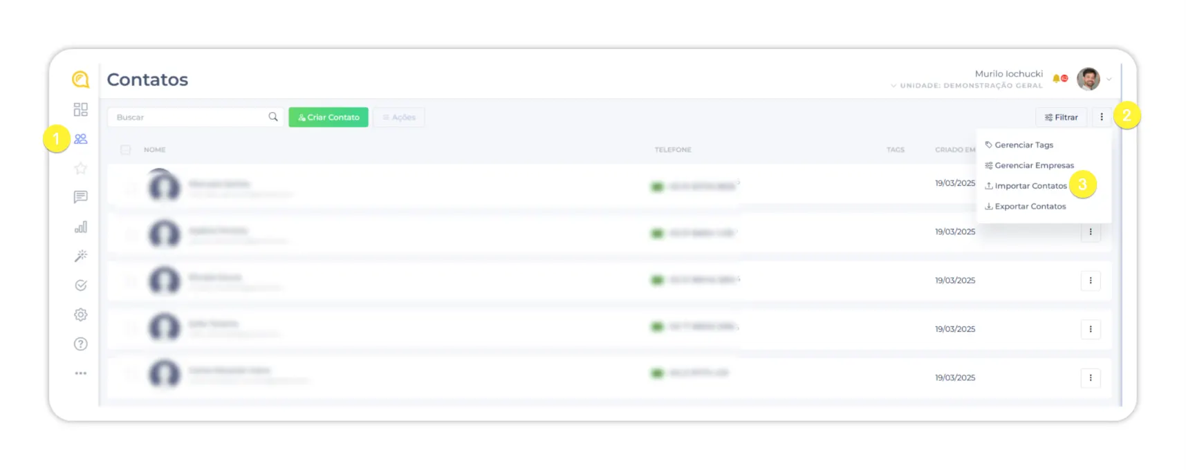 Esse processo facilita a criação em massa de contatos e permite ações rápidas logo após a importação.