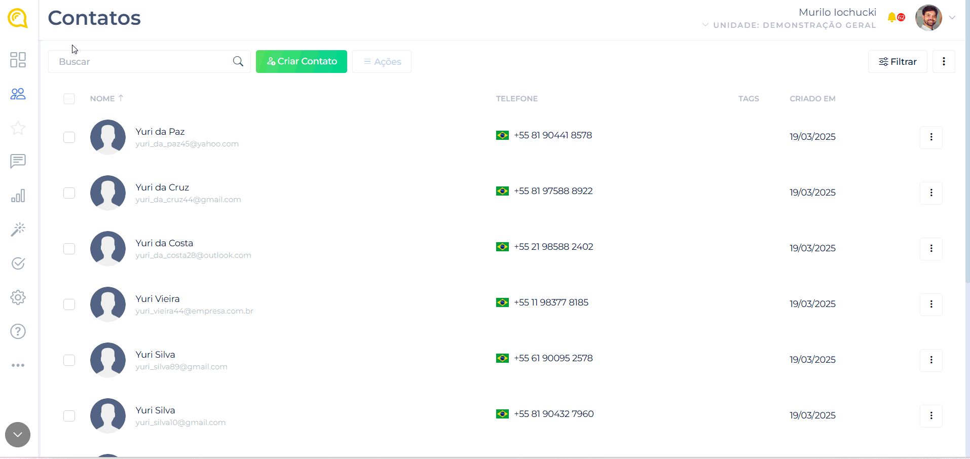 Um dos filtros mais usados são as tags — criadas durante a importação de contatos.