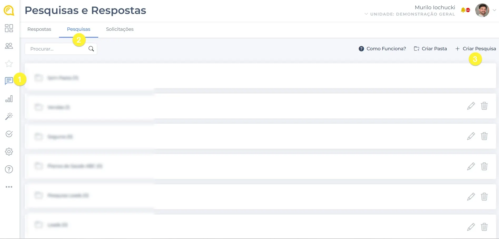 No menu lateral, clique em Pesquisa e Respostas.