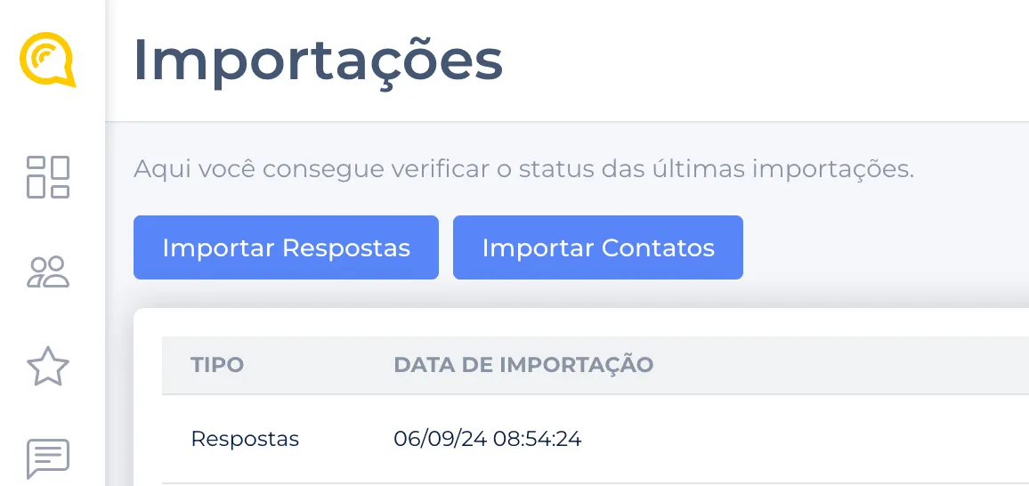 O importador de respostas é um recurso que permite trazer respostas de outras fontes ou histórico antigo de respostas para dentro da plataforma.