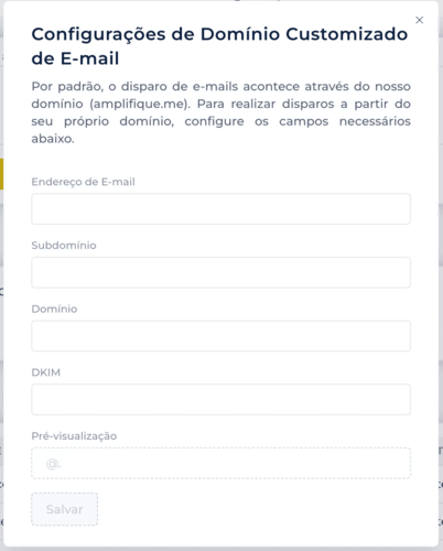 Caso seja necessário desativar o domínio, entre em contato imediatamente com o suporte da Amplifique.me para que o domínio personalizado seja desabilitado, a fim de evitar danos à reputação dos domínios e IPs