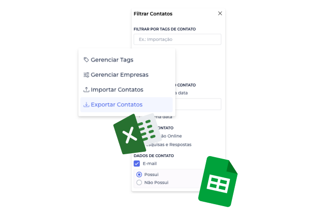 Agora, a exportação de contatos respeita os filtros aplicados na tela de Contatos, permitindo exportar somente os dados que você realmente precisa.