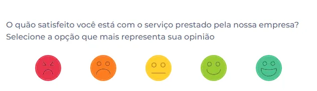 Os clientes escolhem uma das opções que melhor descreve como se sentem em relação ao produto, serviço ou experiência avaliada. Essa escala de 5 pontos permite capturar níveis variados de satisfação — da insatisfação à extrema satisfação.
