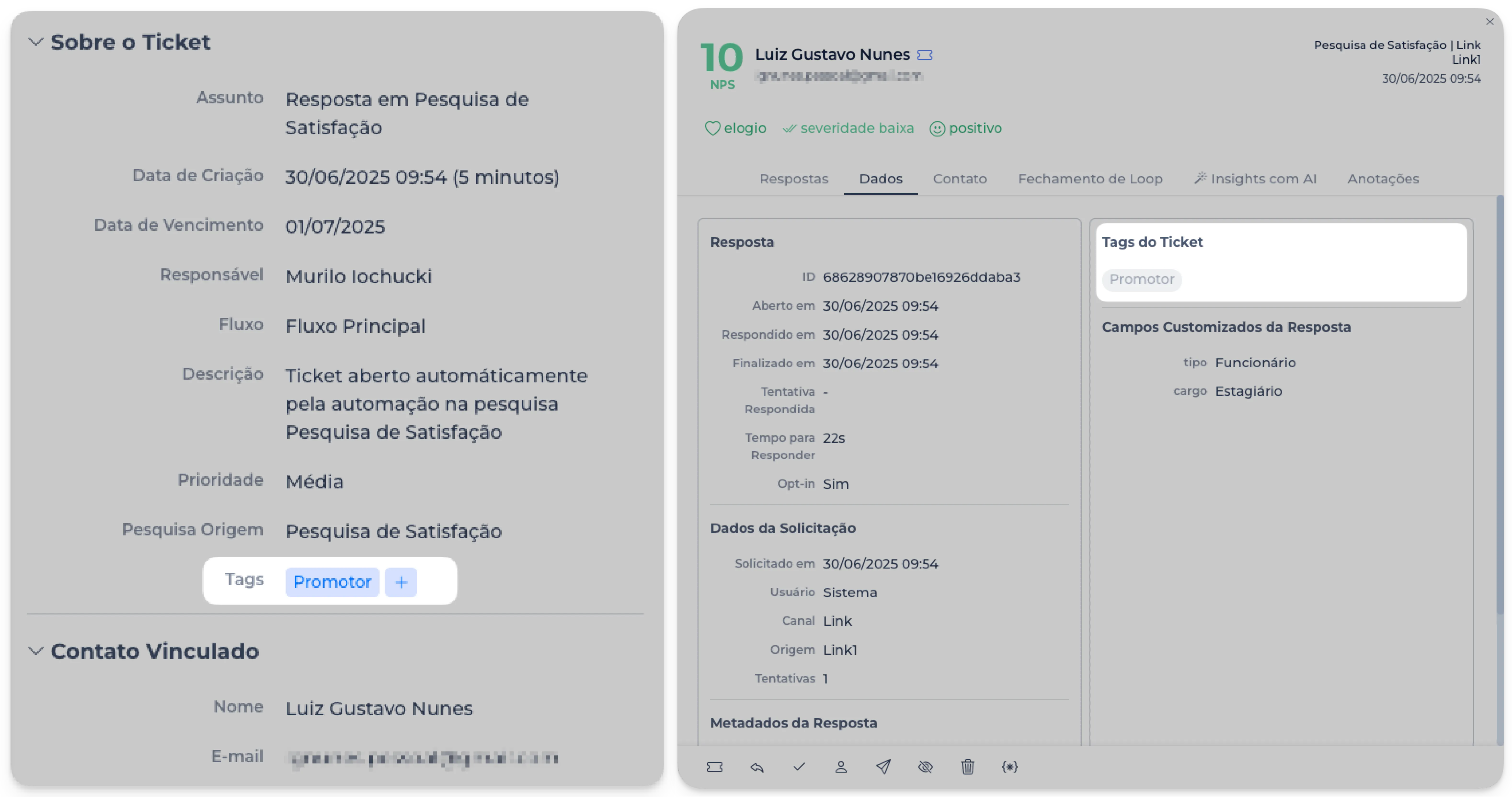 Consequentemente, agora, é possível filtrar as respostas com base nas tags criadas no ticket.