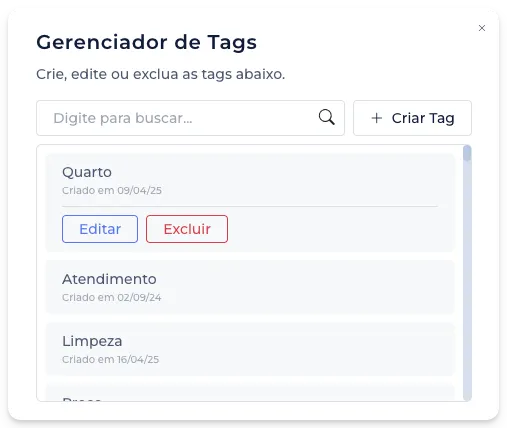 Para facilitar esse processo, criamos o Gerenciador de Tags, disponível em Configurações, na seção Fechamento de Loop dentro de Organização.